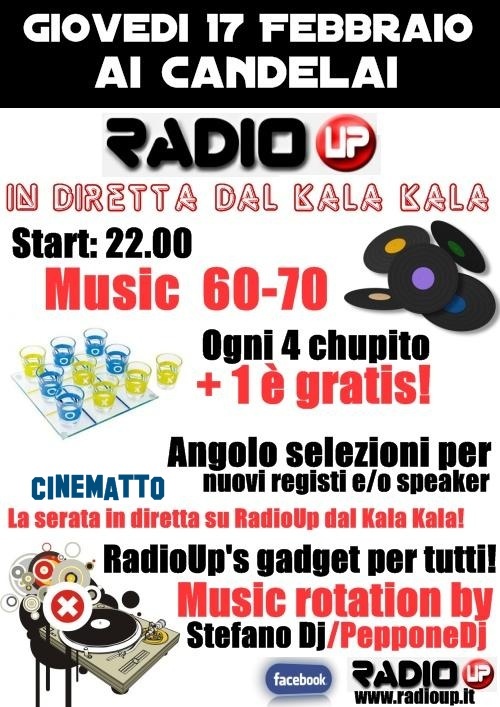 ° La serata verrà mandata in onda direttamente su RadioUp. In diretta dal posto Cinematto!