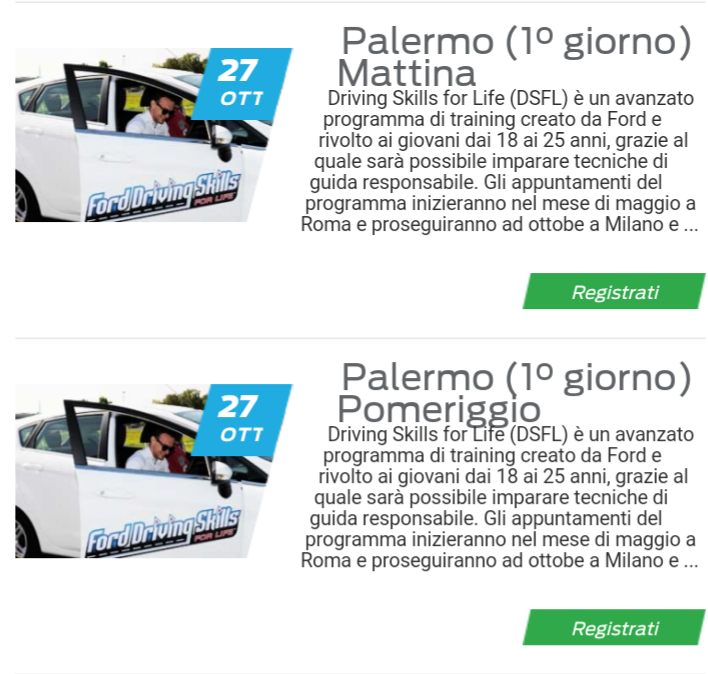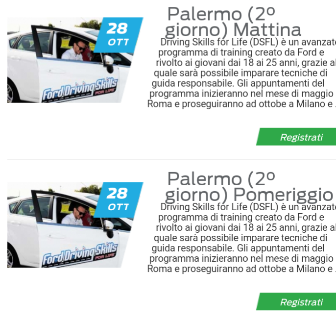I partecipanti, tra i 18 e i 25 anni, potranno iscriversi gratuitamente su www.drivingskillsforlife.it alle sessioni di guida del 27 e 28 Ottobre presso il Piazzale di Ingegneria!
