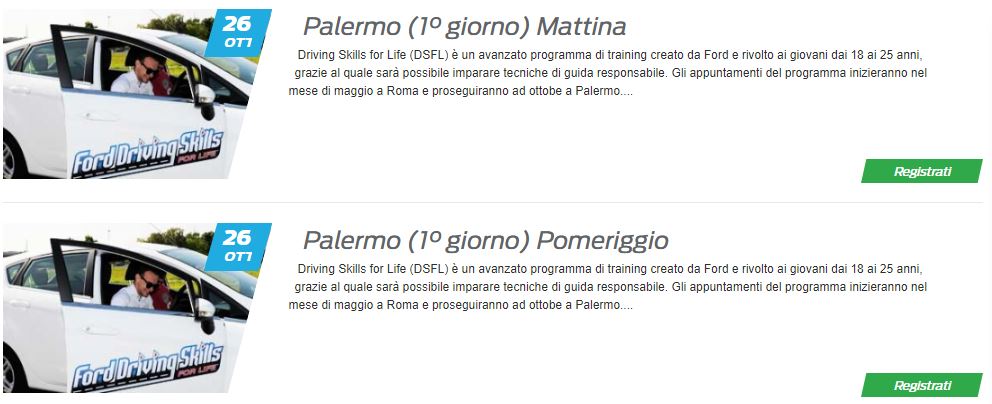 Driving Skills for Life (DSFL) è un avanzato programma di training creato da Ford e rivolto ai neopatentati, grazie al quale sarà possibile imparare tecniche di guida sicura. Gli appuntamenti del programma continueranno, nel corso del 2017, in diverse città italiane. Il programma, che ha ricevuto numerosi riconoscimenti, continua con le sessioni europee dopo il grande successo dei primi 4 anni di attività. In Europa hanno già seguito le sessioni di training più di 20.000 ragazzi, e il 99% di questi ha dichiarato di aver ottenuto ottimi risultati e di aver acquisito conoscenze e tecniche importanti per applicare ogni giorno, sulle strade, i principi della guida responsabile.