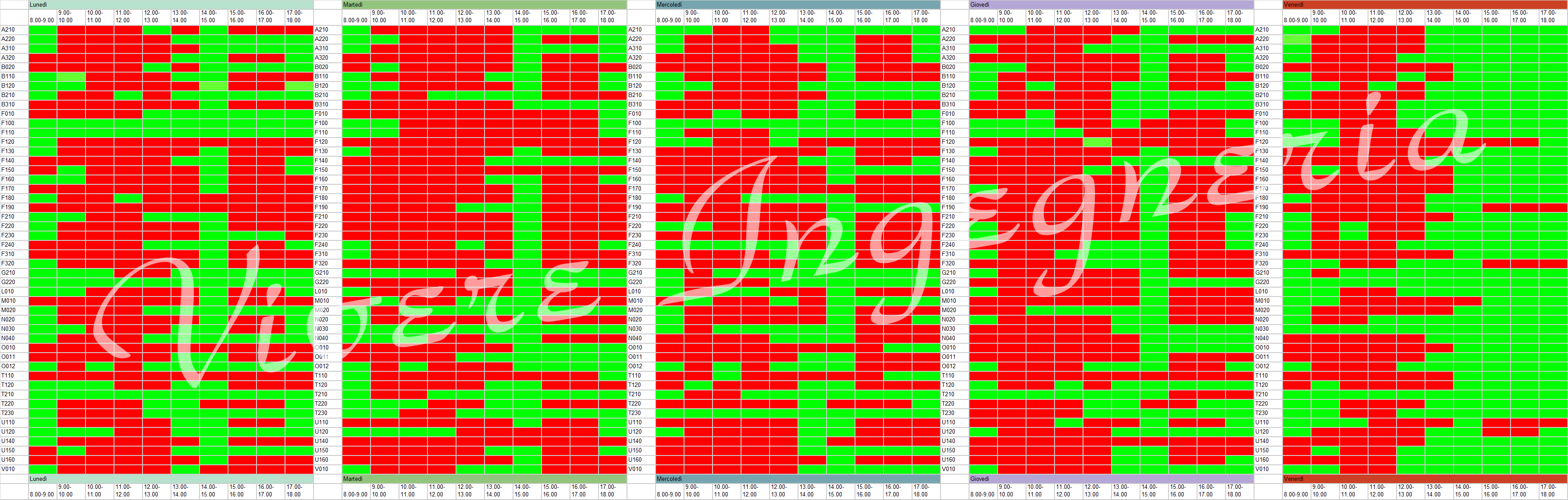 Le celle Verdi rappresentano l’aula libera e quelle Rosse l’orario in cui l’aula occupata.