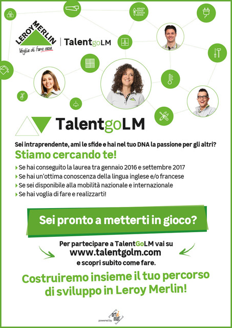 Iscriviti entro il 15 Novembre per partecipare ed entrare nel team di Leroy Merlin! Iscrizioni sul sito: www.talentgolm.com