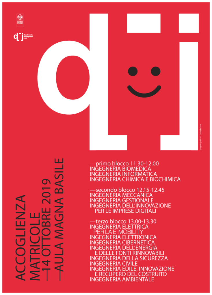 Si comunica agli studenti iscritti al primo anno dei corsi triennali del Dipartimento di Ingegneria (DING), che nella giornata del 14 ottobre, si terrà in aula Magna di Ingegneria (Aula Basile Ed. 7 primo piano) l’accoglienza matricole per l’A.A. 2019/20 divisa in tre blocchi per i seguenti corsi: