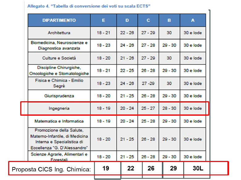 Approvazione nuova delibera del SA sulla conversione dei voti dei ragazzi che tornano dall’Erasmus. Viene allegata tabella: